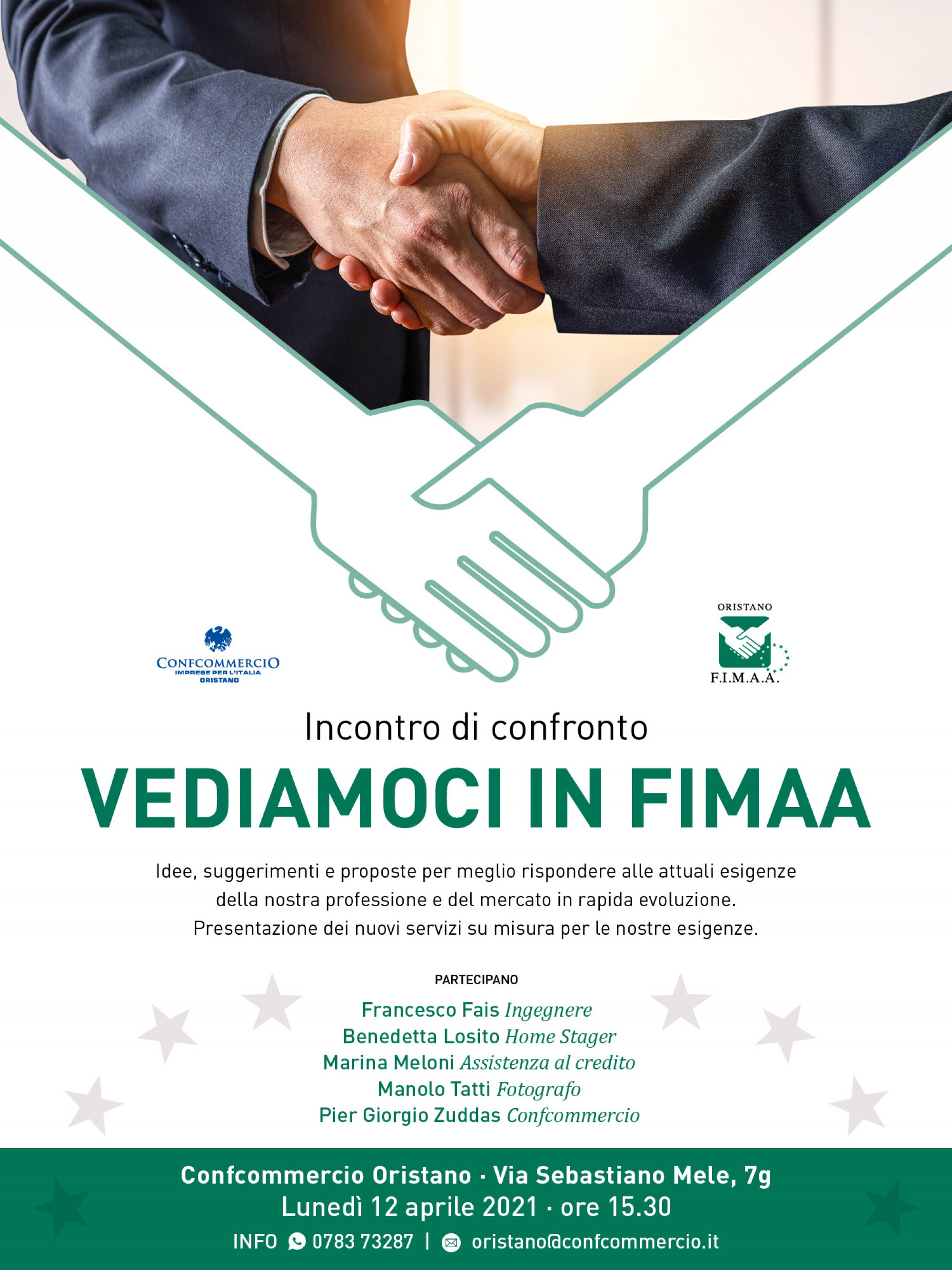 Confcommercio e FIMAA Oristano hanno piacere di invitare i mediatori della provincia a partecipare ad un incontro di confronto per scambiare idee, raccogliere suggerimenti e proposte per meglio rispondere alle attuali esigenze della nostra professione e del mercato in rapida evoluzione.