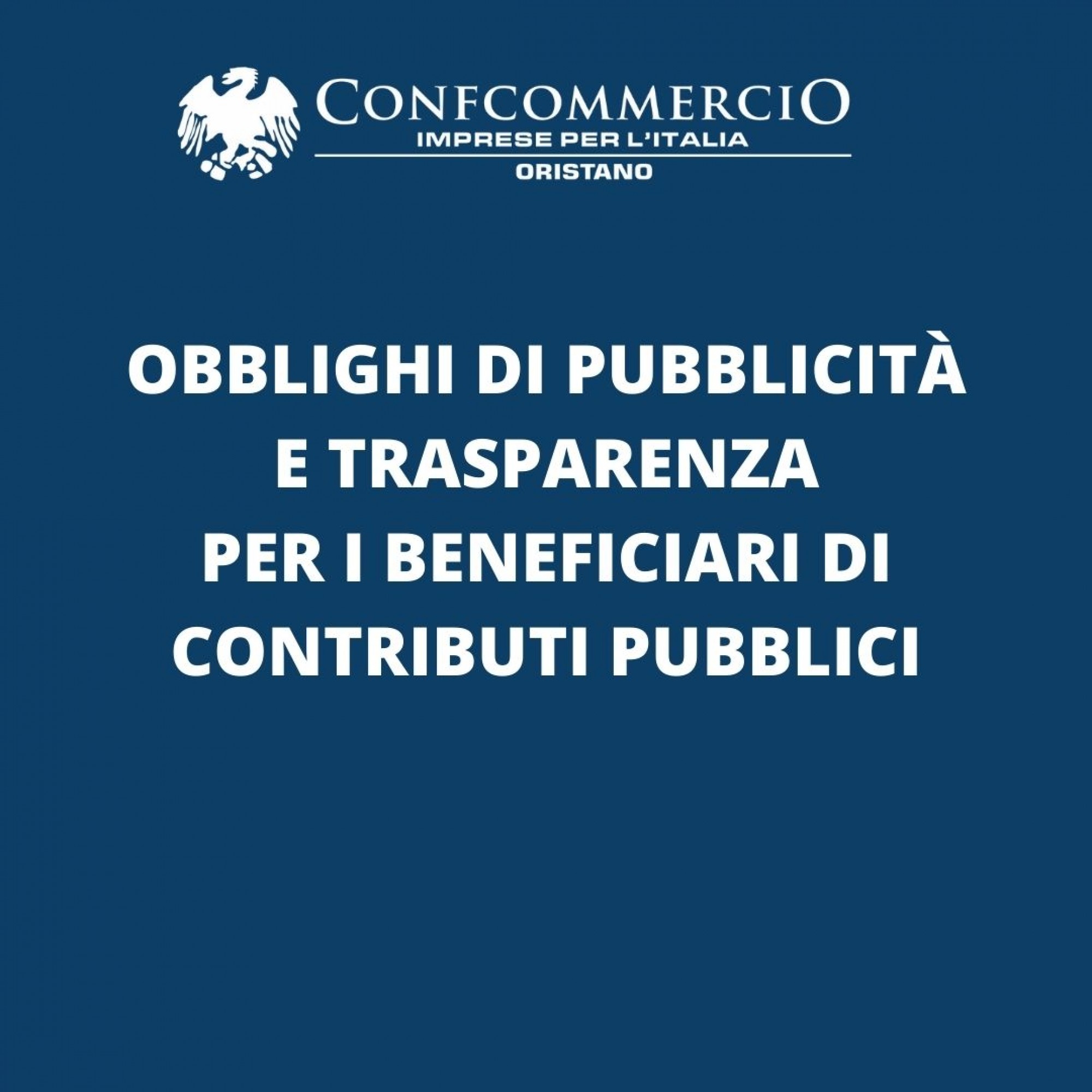 Ai sensi dell'articolo 1, comma 125, della legge 4 agosto 2017, n. 124, si informa che Confcommercio-Imprese per l'Italia Oristano (C.F. 80005550951), nell'esercizio finanziario 2020, ha usufruito delle seguenti sovvenzioni, sussidi, vantaggi, contributi o aiuti: